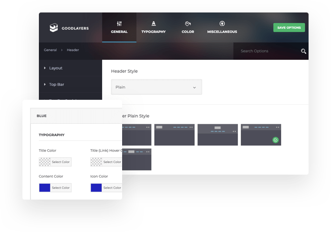 Not only the fantastic GoodLayers Page Builder, but also, the Admin Panel comes with 600+ options. It can turn your site to unlimited possibilities in just a few clicks. Changing header, picking colors, selecting fonts. All in one place.